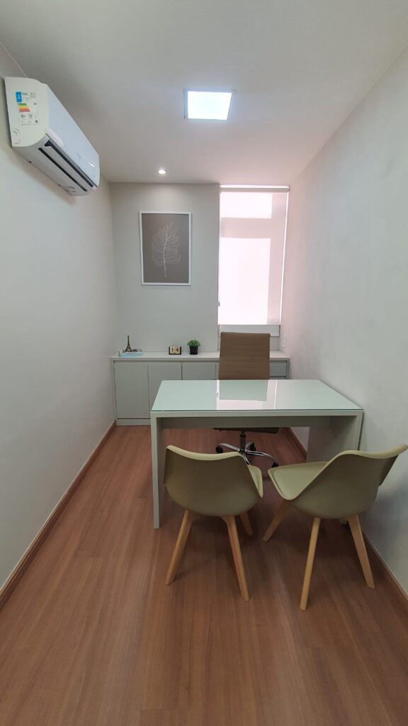 A empresa possui salas muito bem equipadas pro segmento de saúde, como médicos, nutricionistas etc. Os escritórios são novos e bem decorados, recepção aconchegante com café a disposição. Possui impressora e outros itens de infraestrutura pra quem aluga. Consigo fazer o aluguel pelo app próprio, o que facilita, já vejo as disponibilidades de data e horário com antecedência.